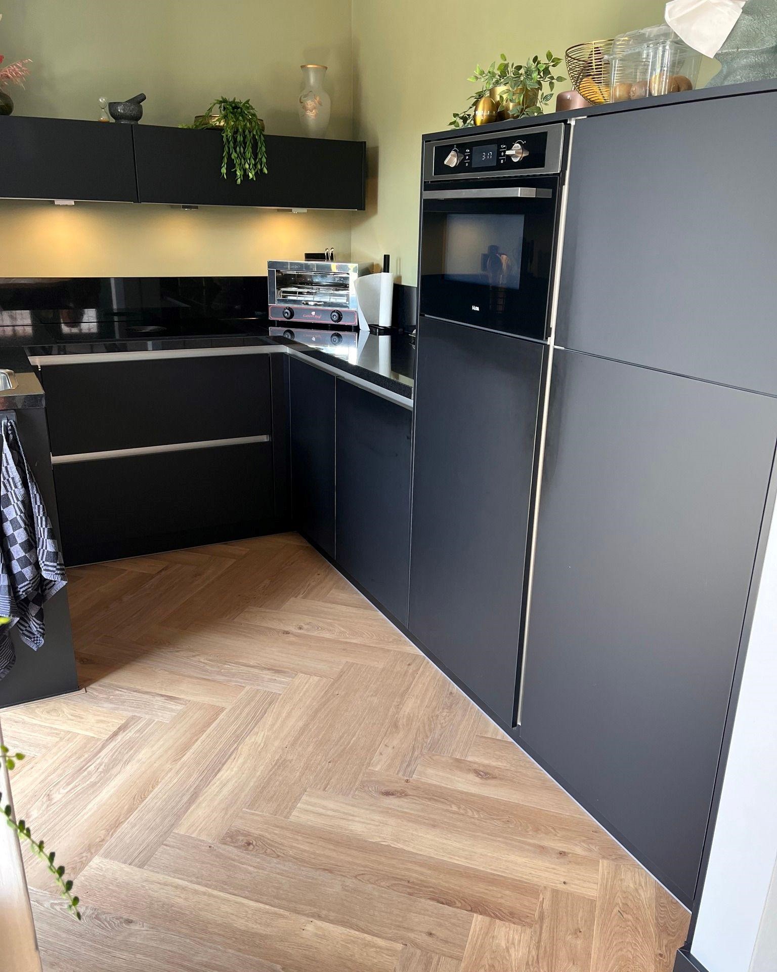 Meister mat gelakte houten vloer en matchende visgraat laminaat vloer